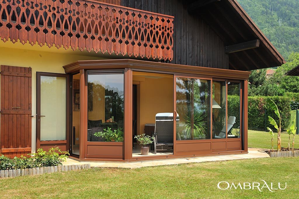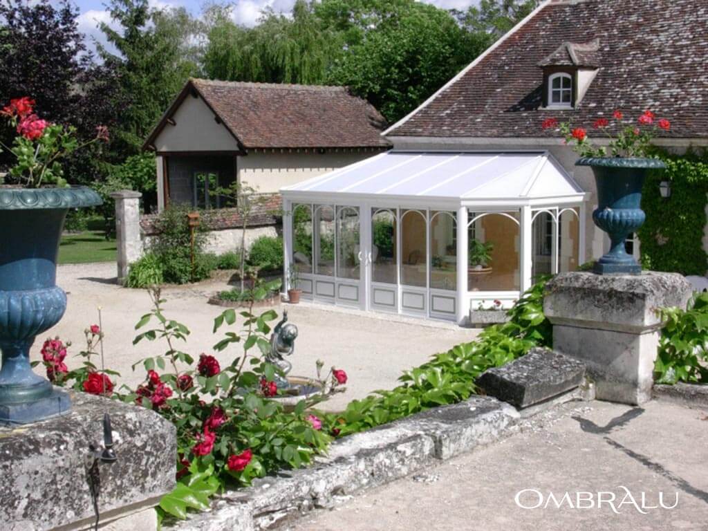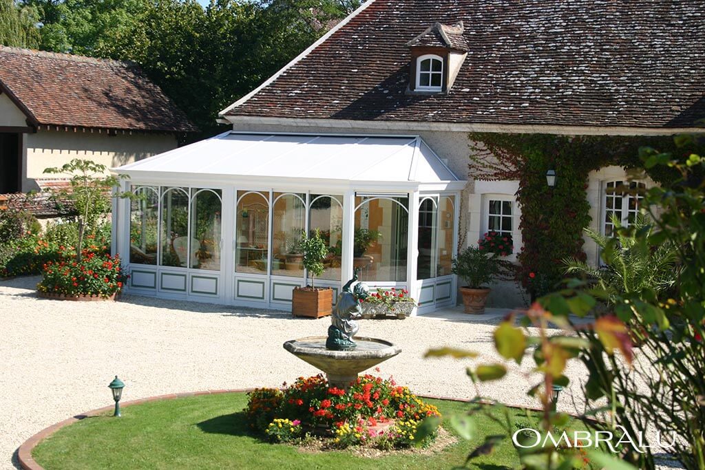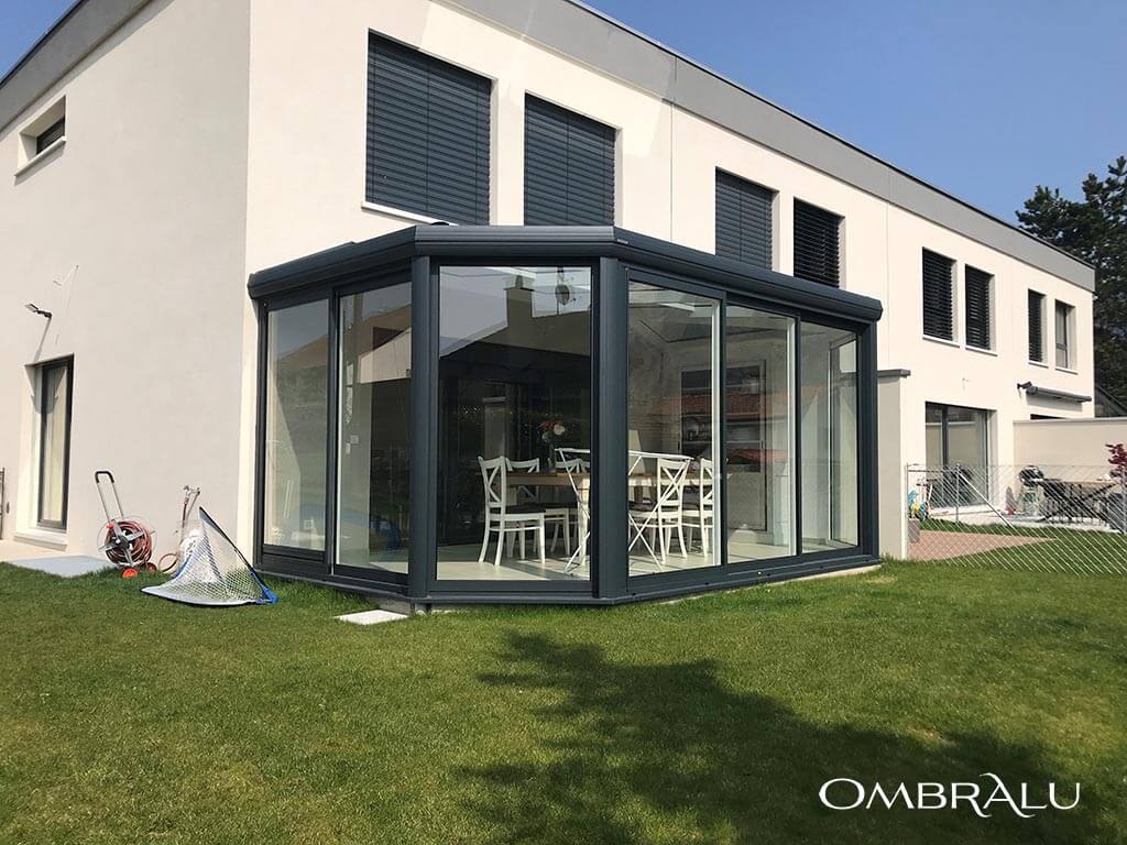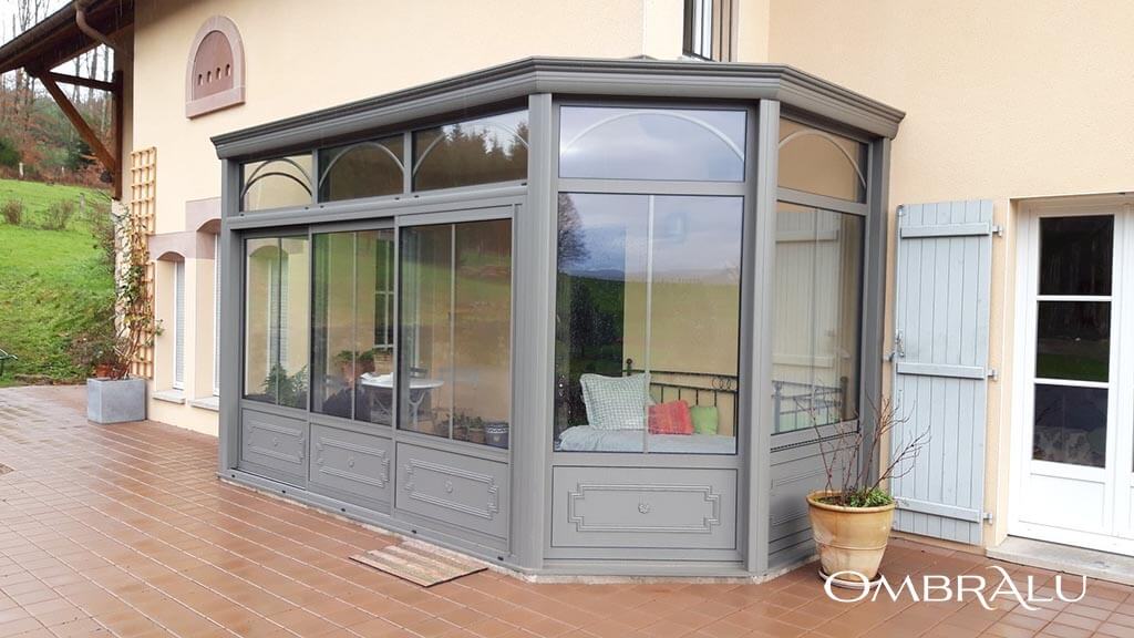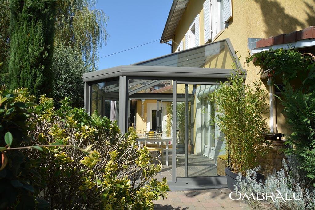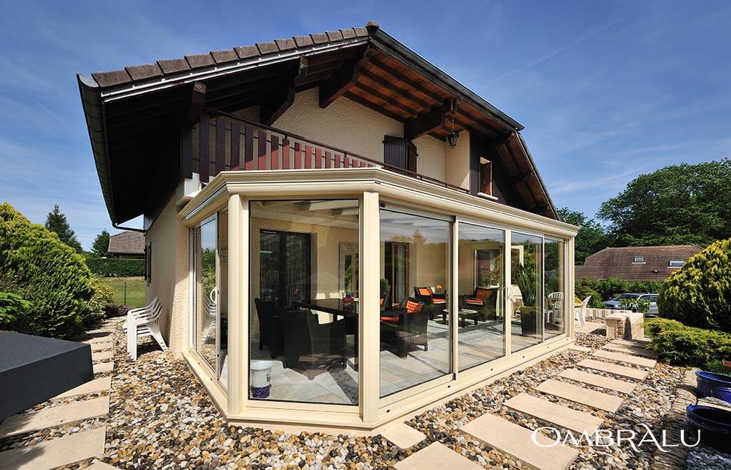 La véranda EMERAUDE est composée d'une toiture rectangulaire et d'une toiture "à facettes" dans les 2 angles coupés. La véranda Emeraude offre une variante esthétique agréable. Sa toiture ‘à facettes’ contribue à l’originalité de son design. Cette forme adoucie s'intègre harmonieusement à de nombreuses façades. Son architecture et sa construction permettent de réaliser de grandes dimensions de véranda. D'abord séparée de la maison, il est possible de supprimer les baies vitrées pour que la véranda et la maison ne fasse plus qu'une seule et même pièce.