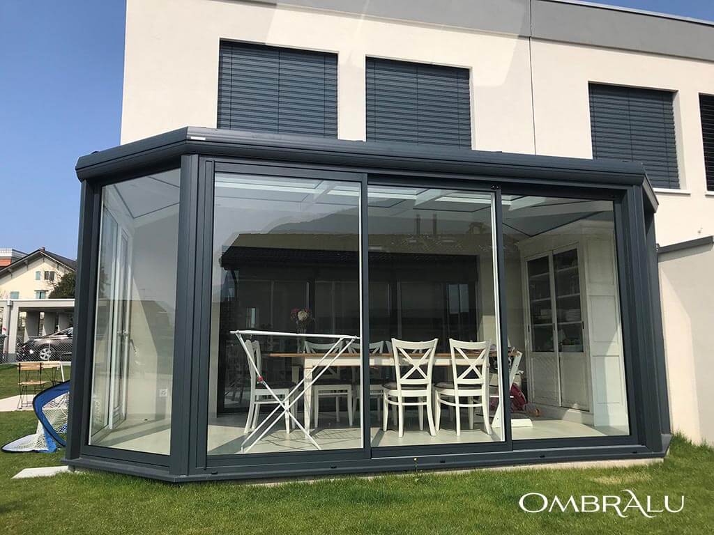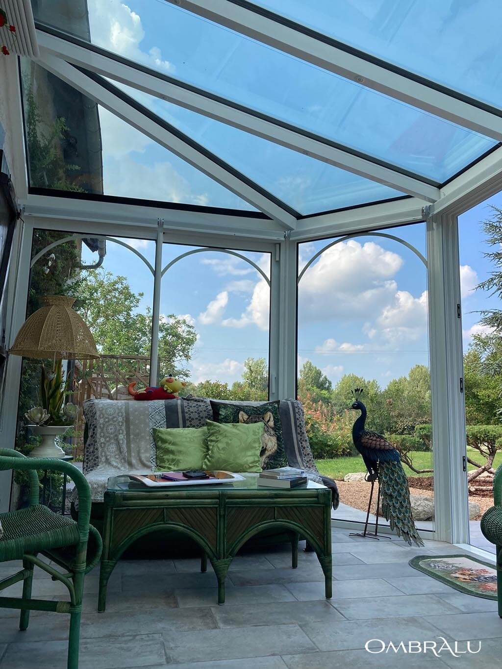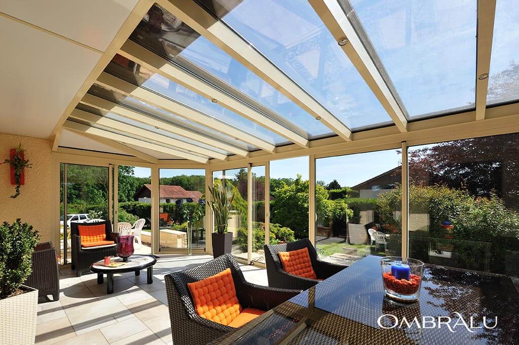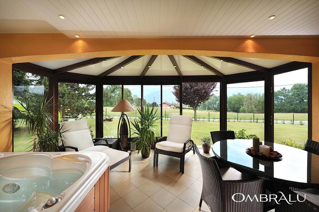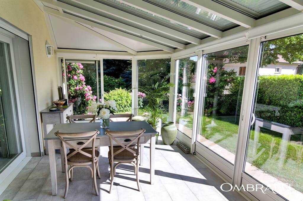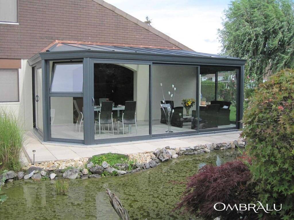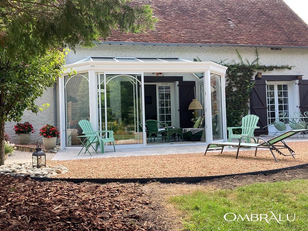 La véranda EMERAUDE est composée d'une toiture rectangulaire et d'une toiture "à facettes" dans les 2 angles coupés. La véranda Emeraude offre une variante esthétique agréable. Sa toiture ‘à facettes’ contribue à l’originalité de son design. Cette forme adoucie s'intègre harmonieusement à de nombreuses façades. Son architecture et sa construction permettent de réaliser de grandes dimensions de véranda. D'abord séparée de la maison, il est possible de supprimer les baies vitrées pour que la véranda et la maison ne fasse plus qu'une seule et même pièce.