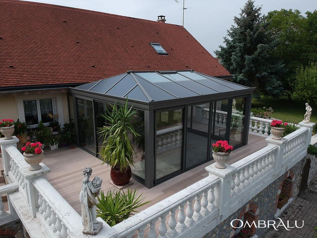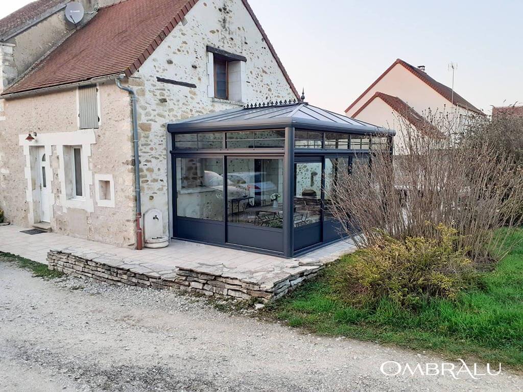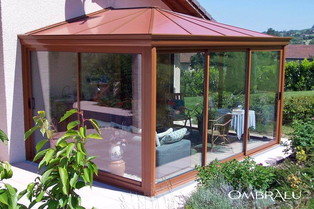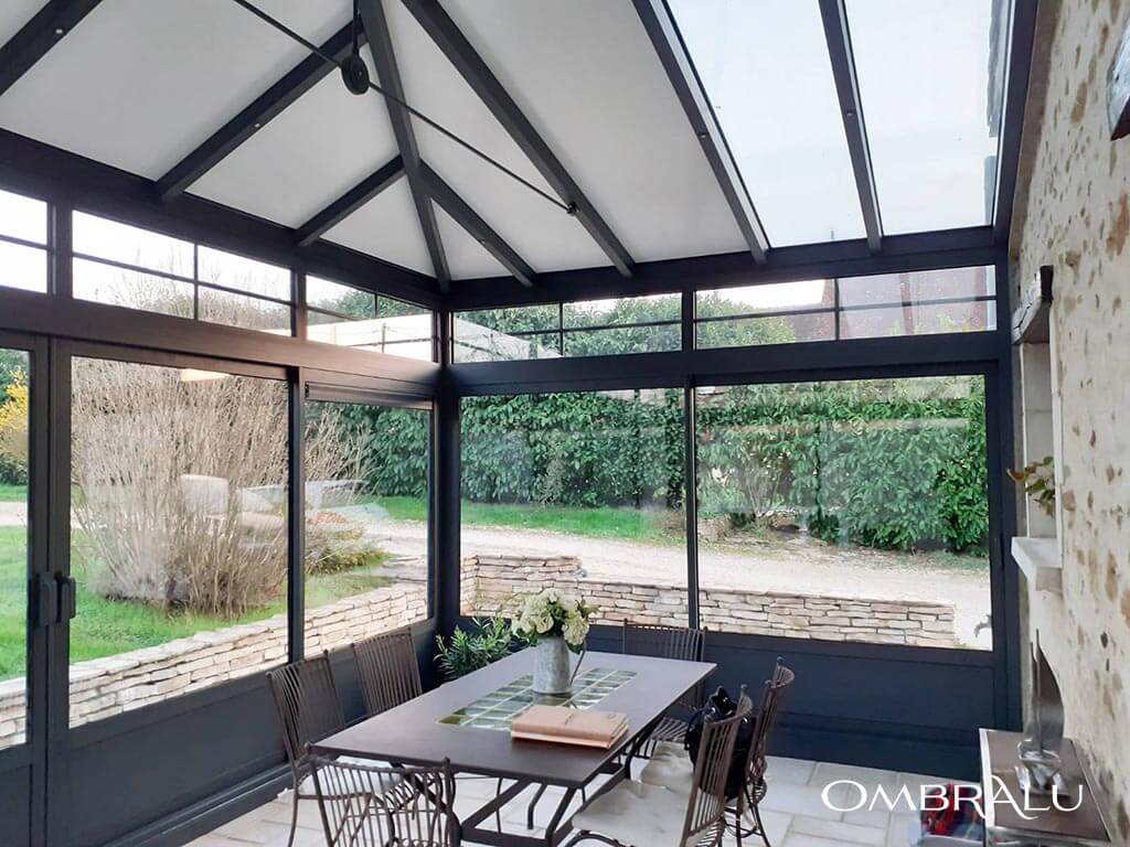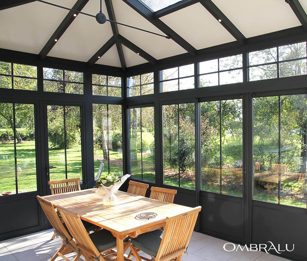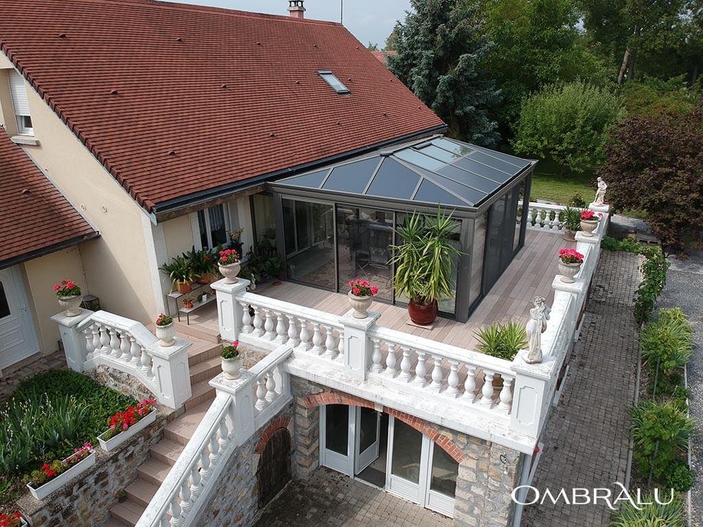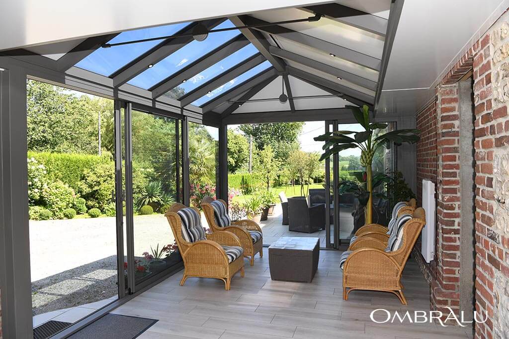 La Véranda GRENAT est composée d'une toiture rectangulaire à facettes rayonnantes avec une double pente. Sa toiture offre une grande hauteur sous plafond pour une réelle impression de volume et d'espace. Cette conception permet de jouer astucieusement avec le verre et les panneaux isolant afin de gagner en originalité et en design. La hauteur de sa toiture favorise l’encadrement d’ouvertures hautes.