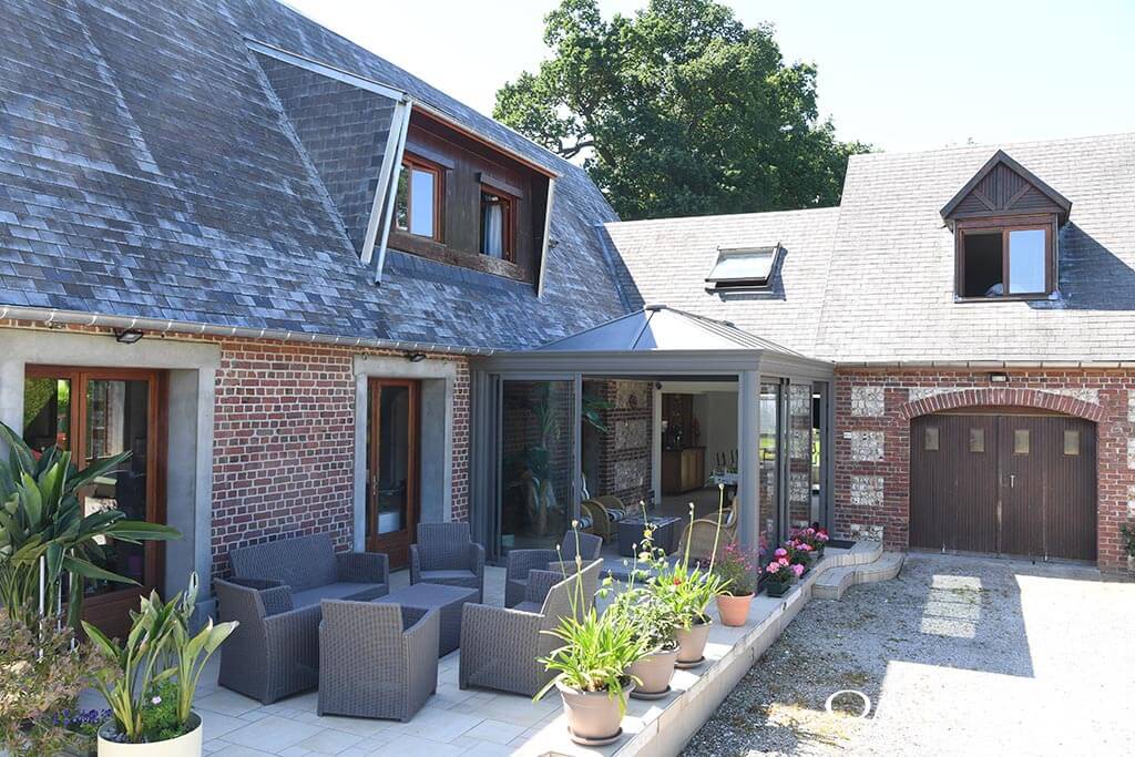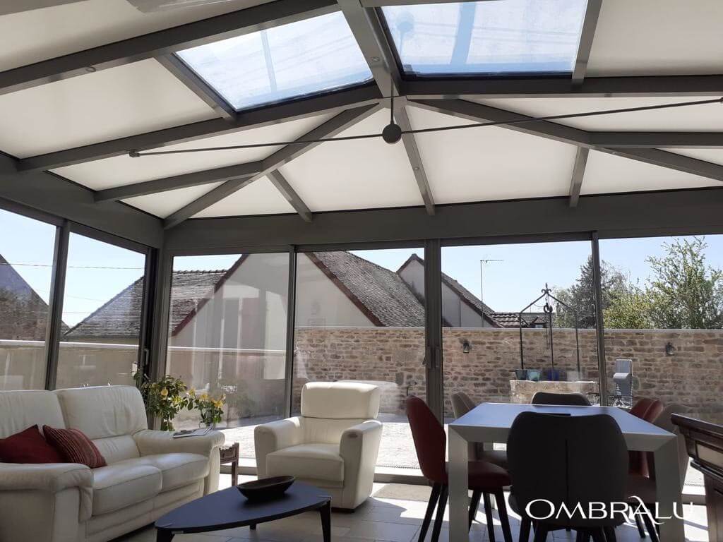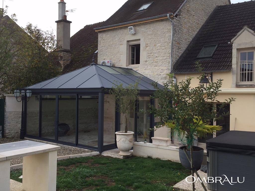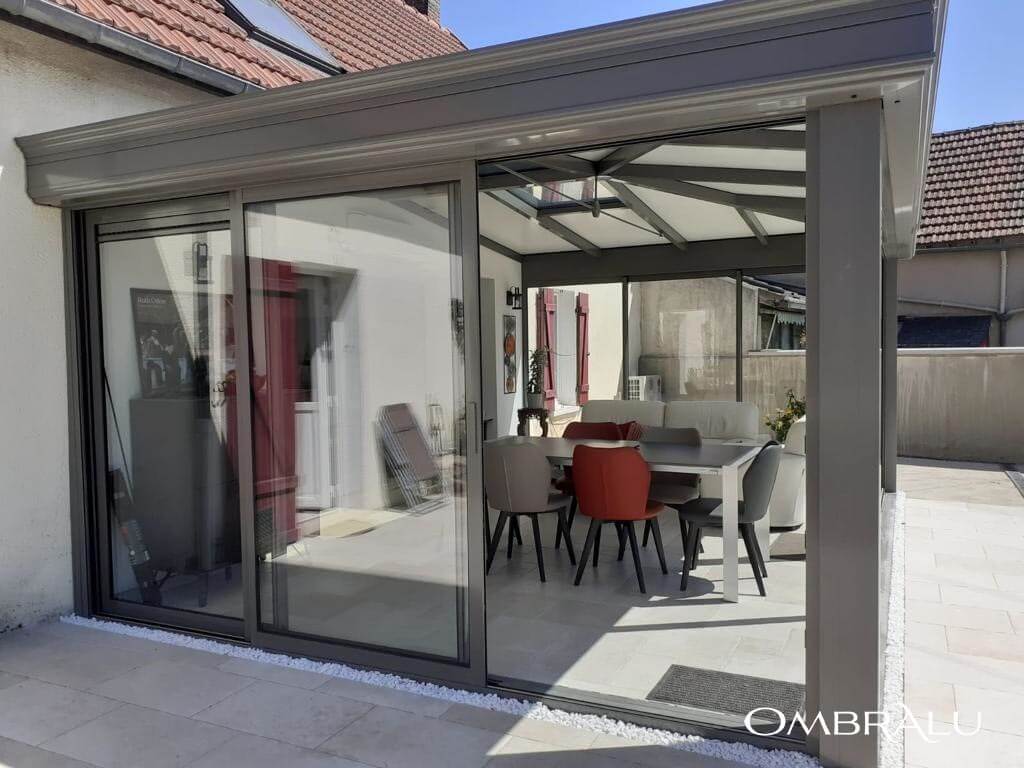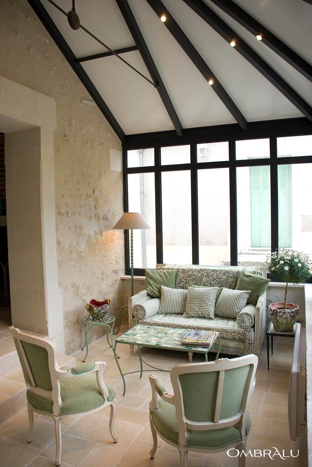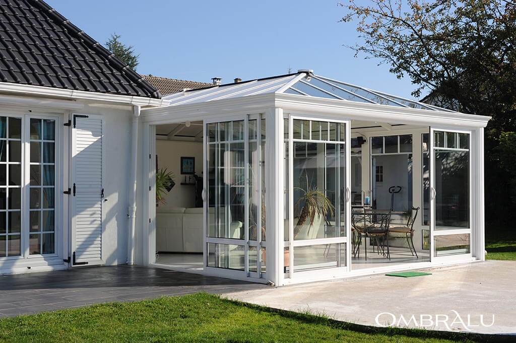 La Véranda GRENAT est composée d'une toiture rectangulaire à facettes rayonnantes avec une double pente. Sa toiture offre une grande hauteur sous plafond pour une réelle impression de volume et d'espace. Cette conception permet de jouer astucieusement avec le verre et les panneaux isolant afin de gagner en originalité et en design. La hauteur de sa toiture favorise l’encadrement d’ouvertures hautes.
