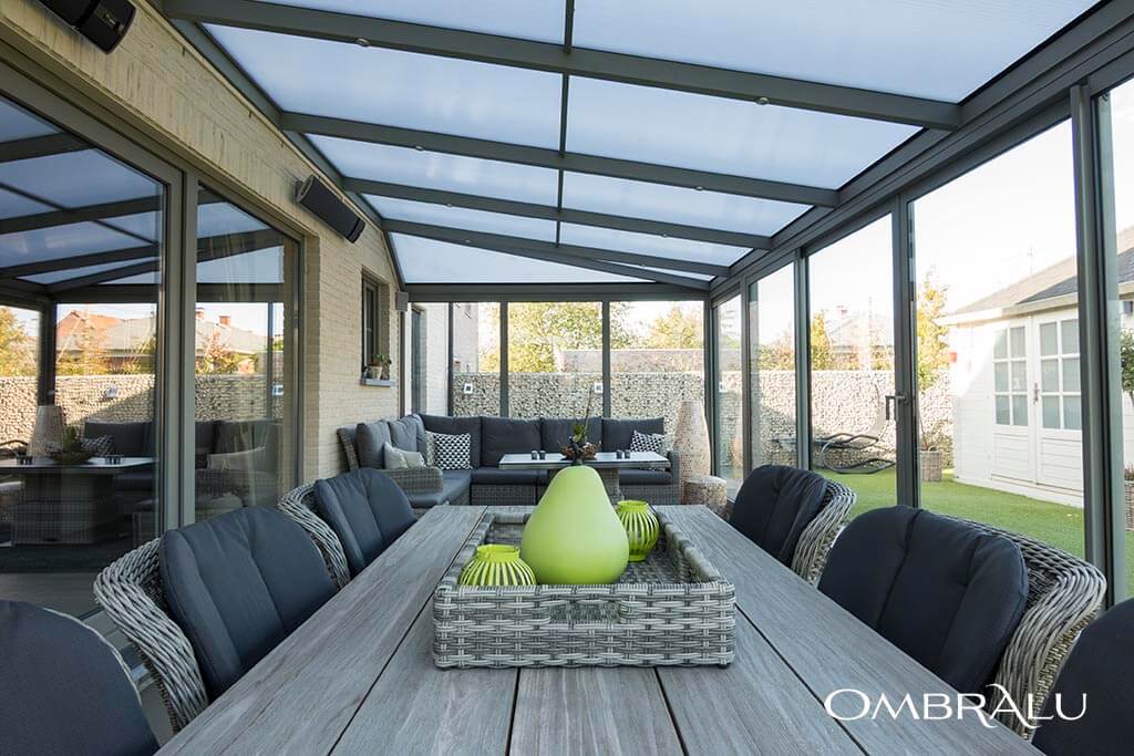 La Véranda TOPAZE est une véranda de forme rectangulaire au sol et composée d'une toiture rectangulaire et à facettes. Ce modèle de Véranda vous procure le maximum de surface à vivre, avec l'esthétique d'une toiture travaillée.